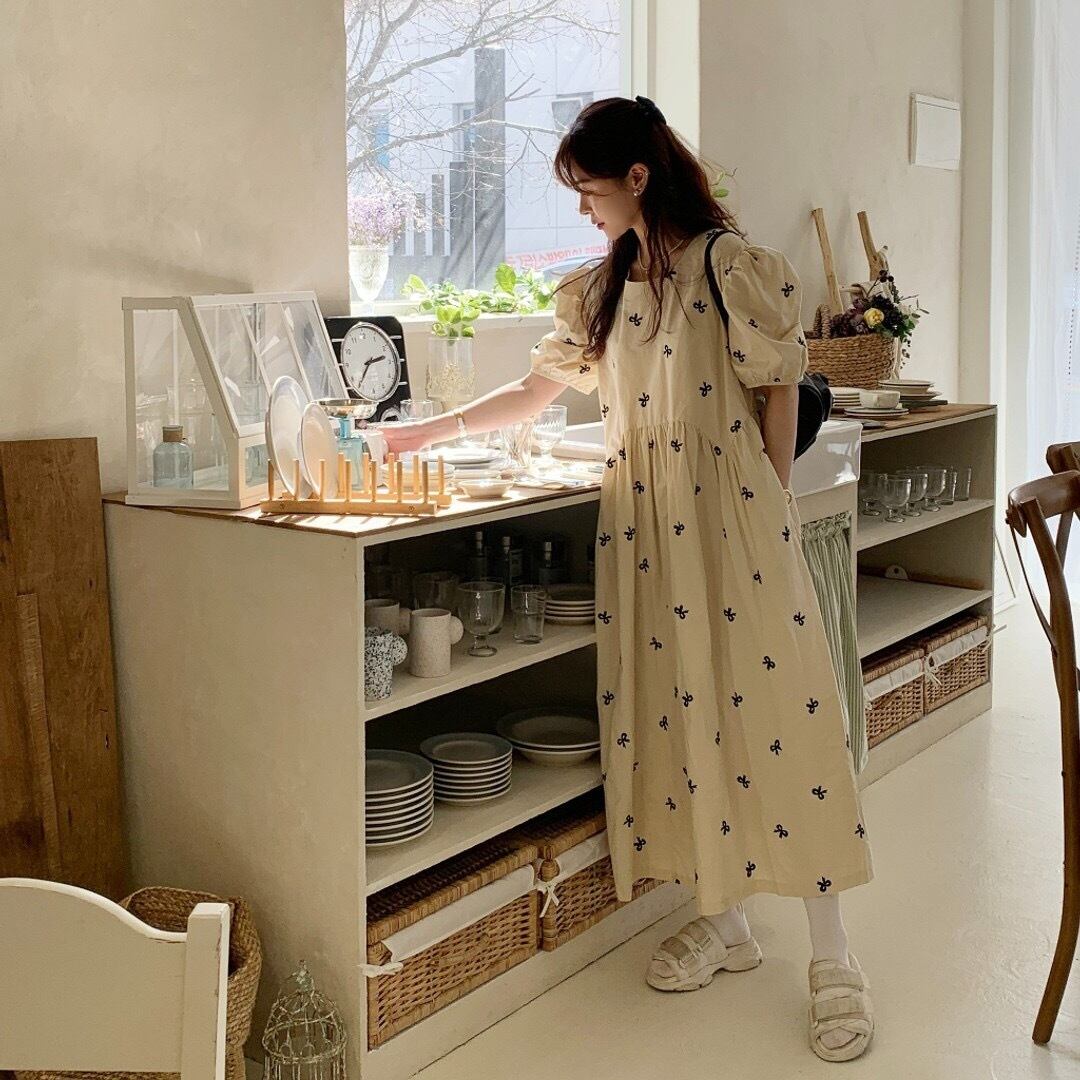 リボン刺繍ワンピース!優雅なリボン刺繍が施されたこのワンピースは、可愛らしさと大人の上品さを兼ね備えた一着です。フレアなシルエットが特徴で、すっきりとしたラインの中にも華やかさを加えてくれます!さまざまなシーンで活躍すること間違いなしです!