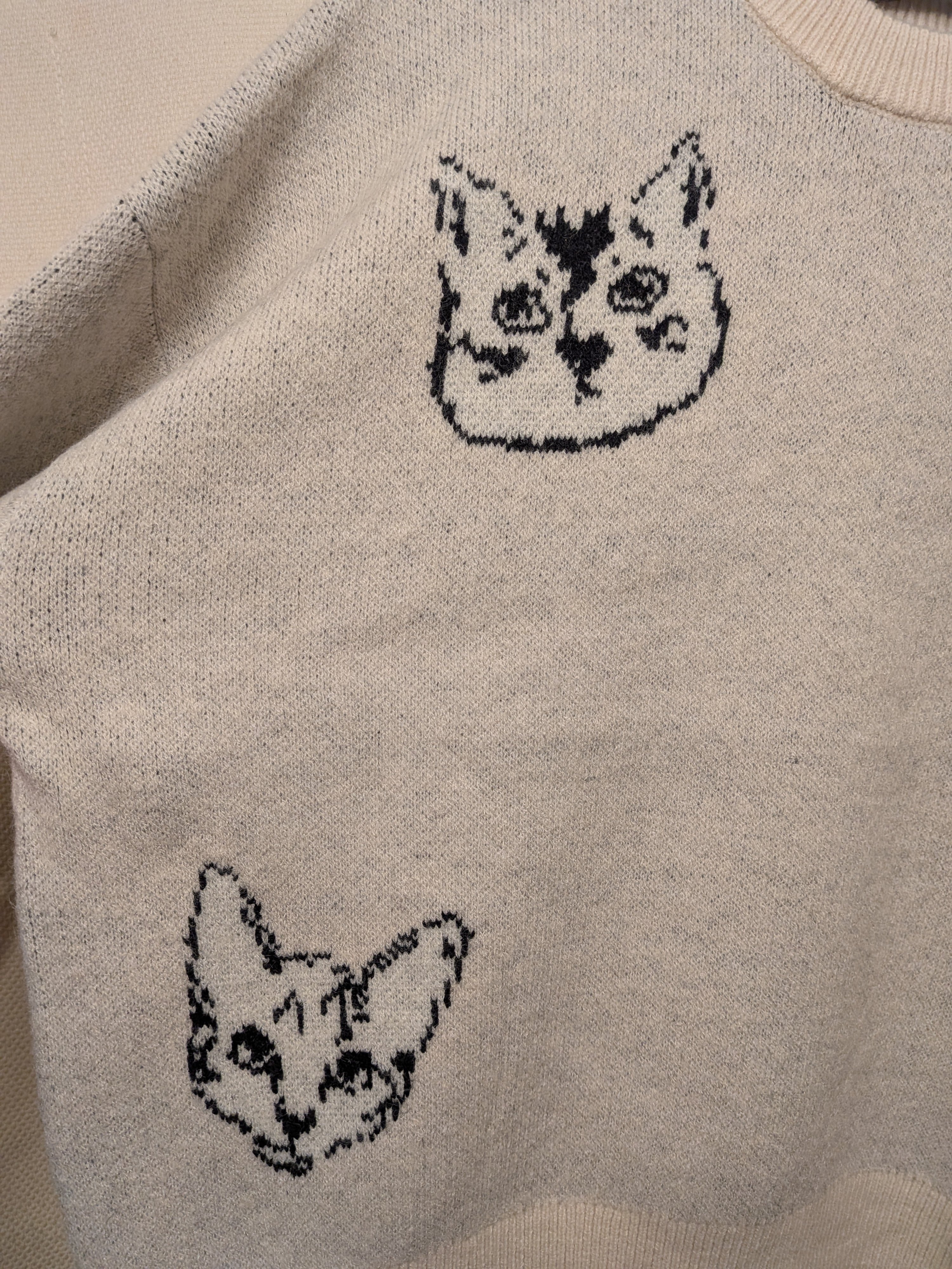 猫フェイスニット オートミール
