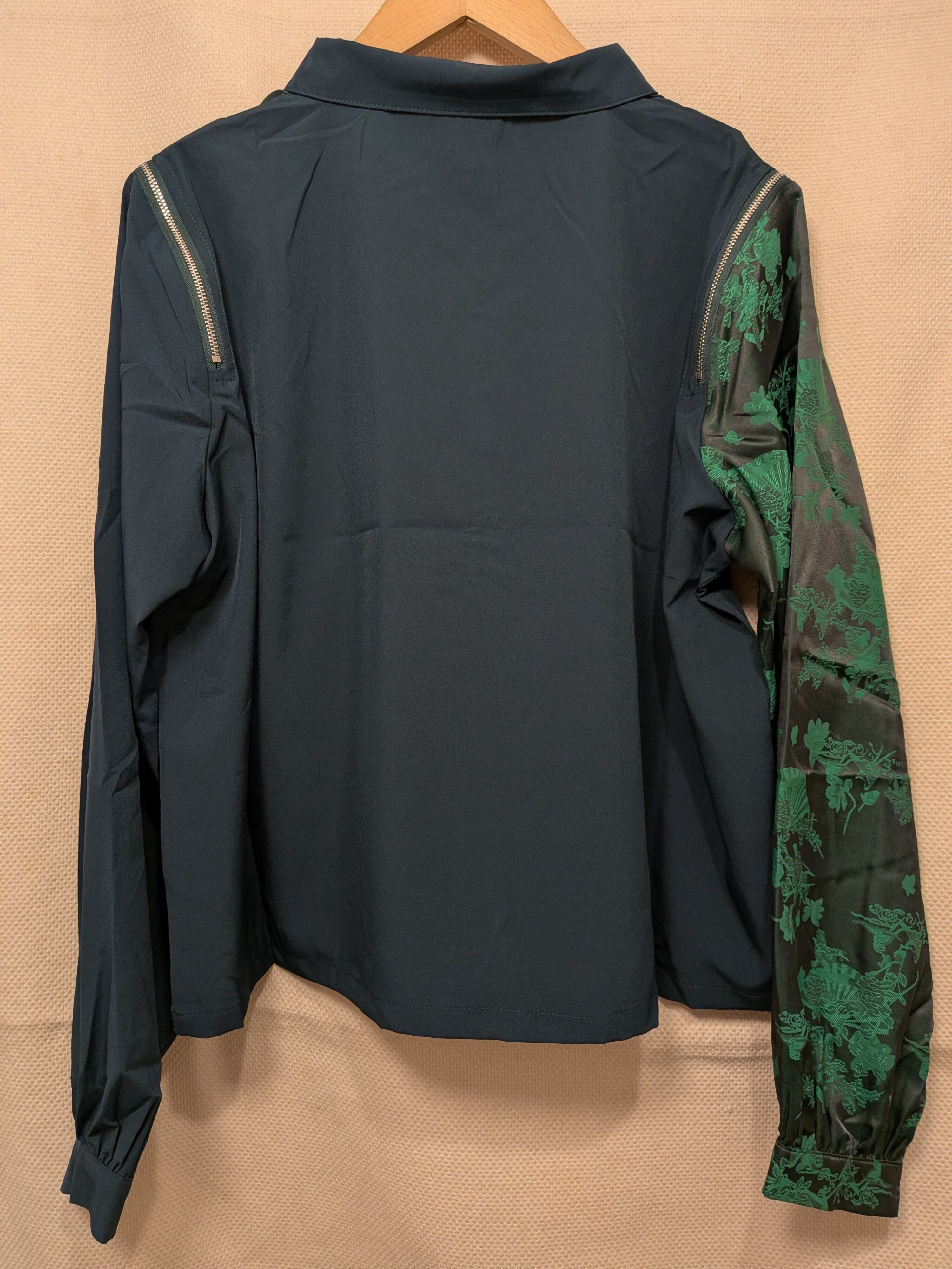 緑のコントラストが美しい、アシンメトリーデザインのシャツです。