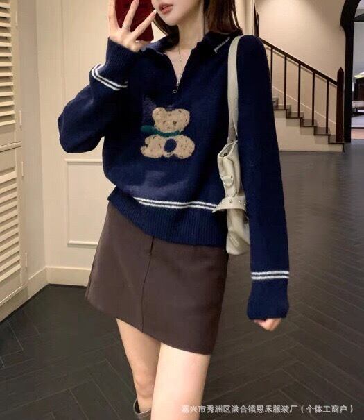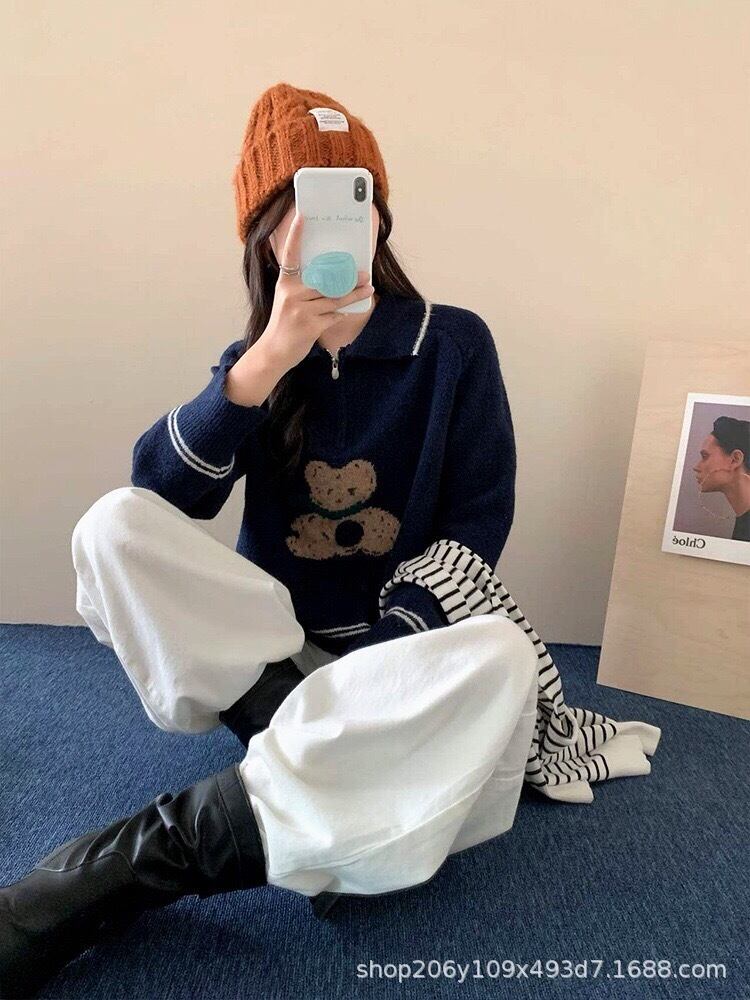 子グマハーフzipニットは、ハーフジップデザインで、着脱も簡単でスタイリングの幅が広がります!ゆったりとしたシルエットが、リラックスした印象を与えつつ、どんなコーディネートにも合わせやすいのが特徴です。