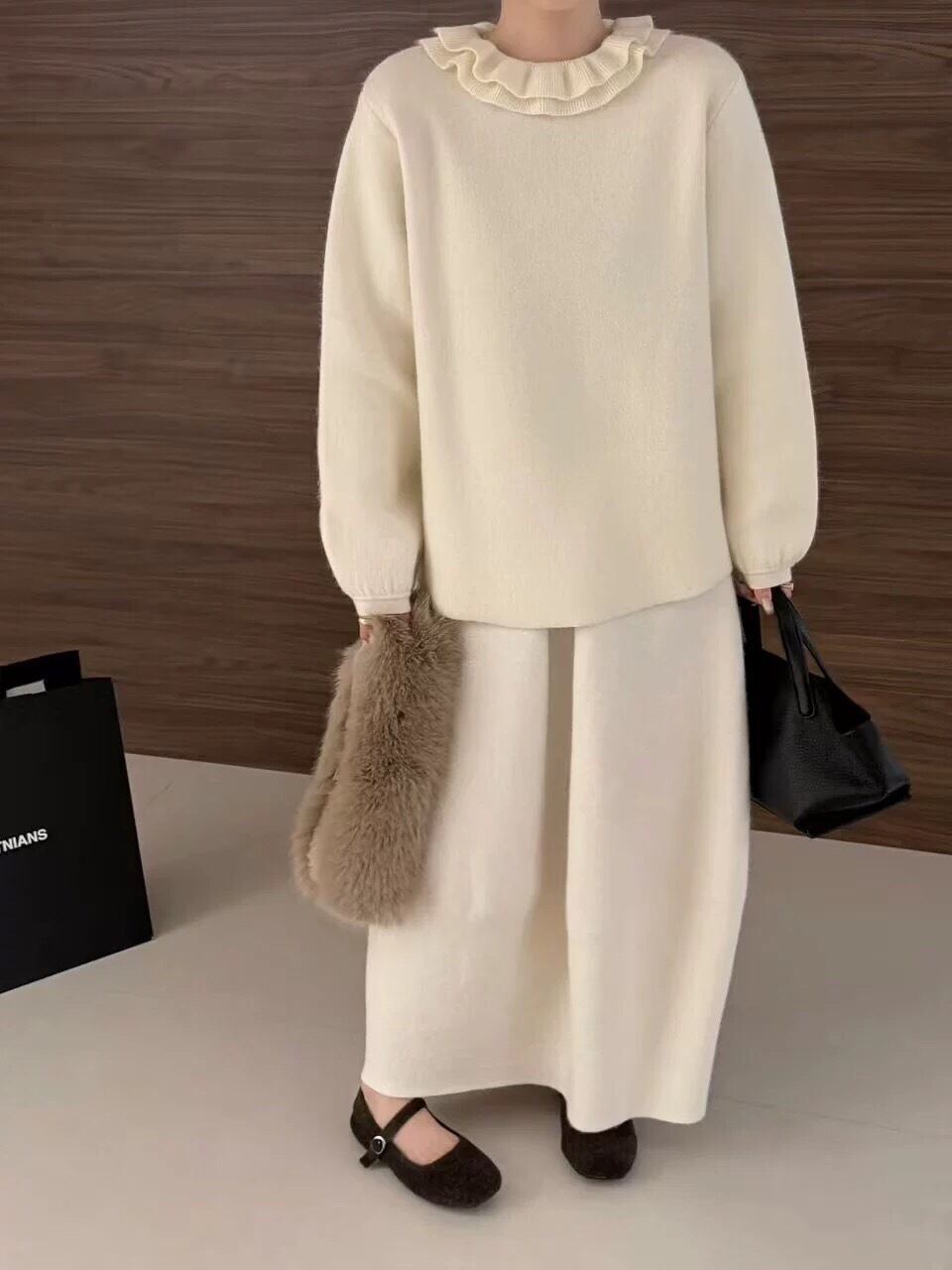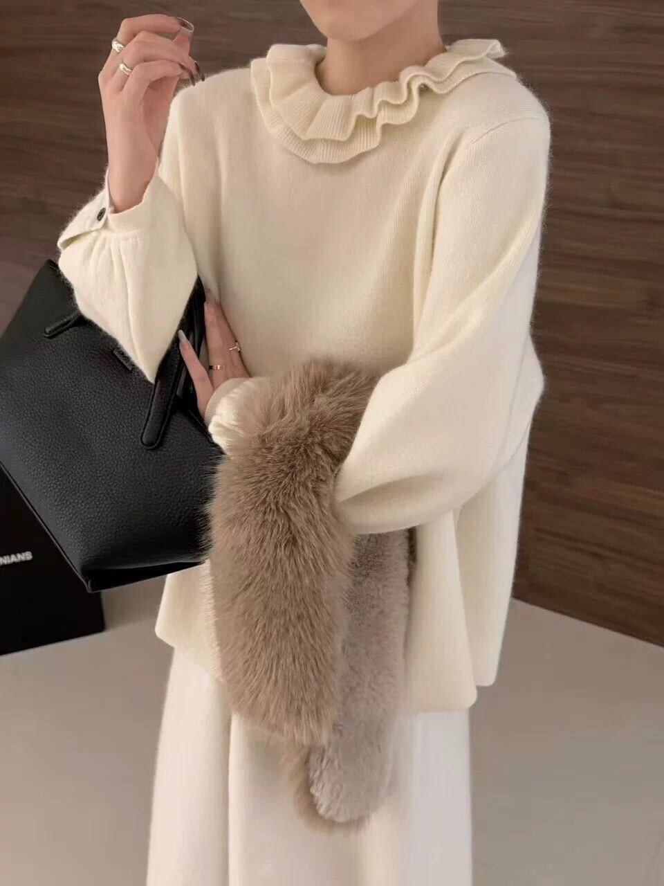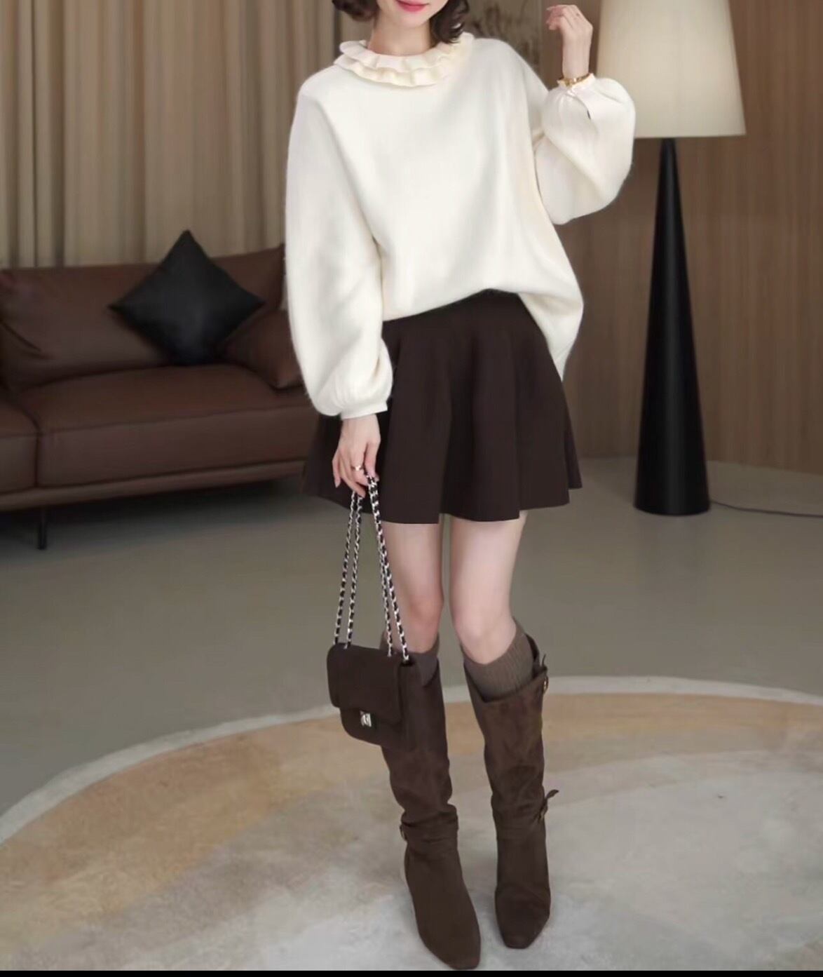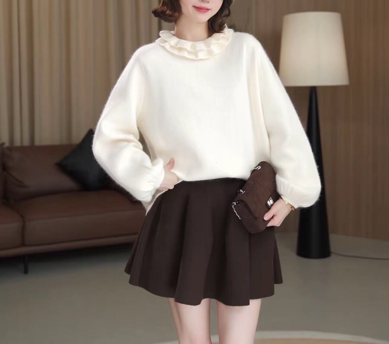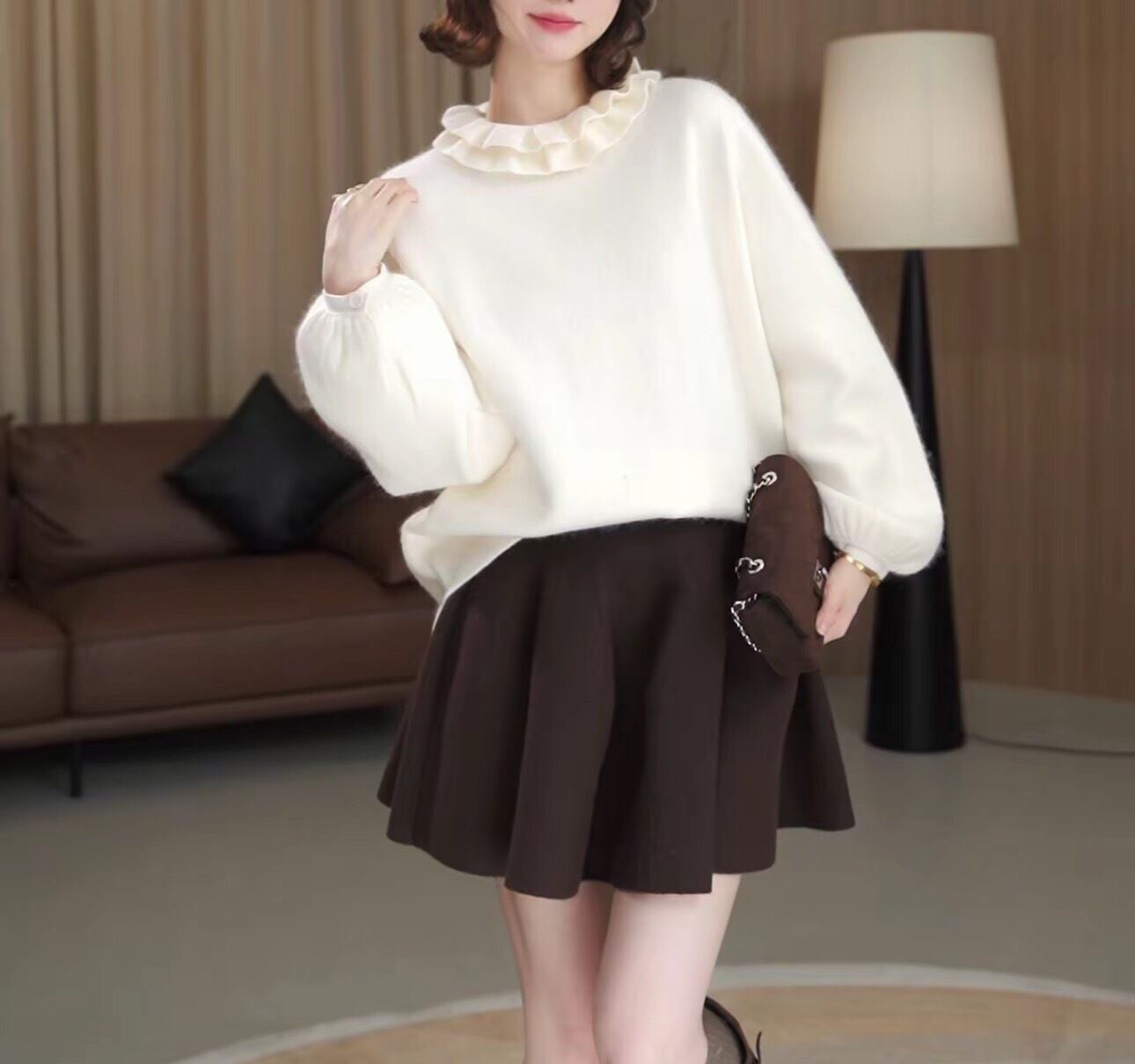 フリルネックニットは今季のワードローブに欠かせない、首元のボリューム感が目を惹くフリルネックニット。