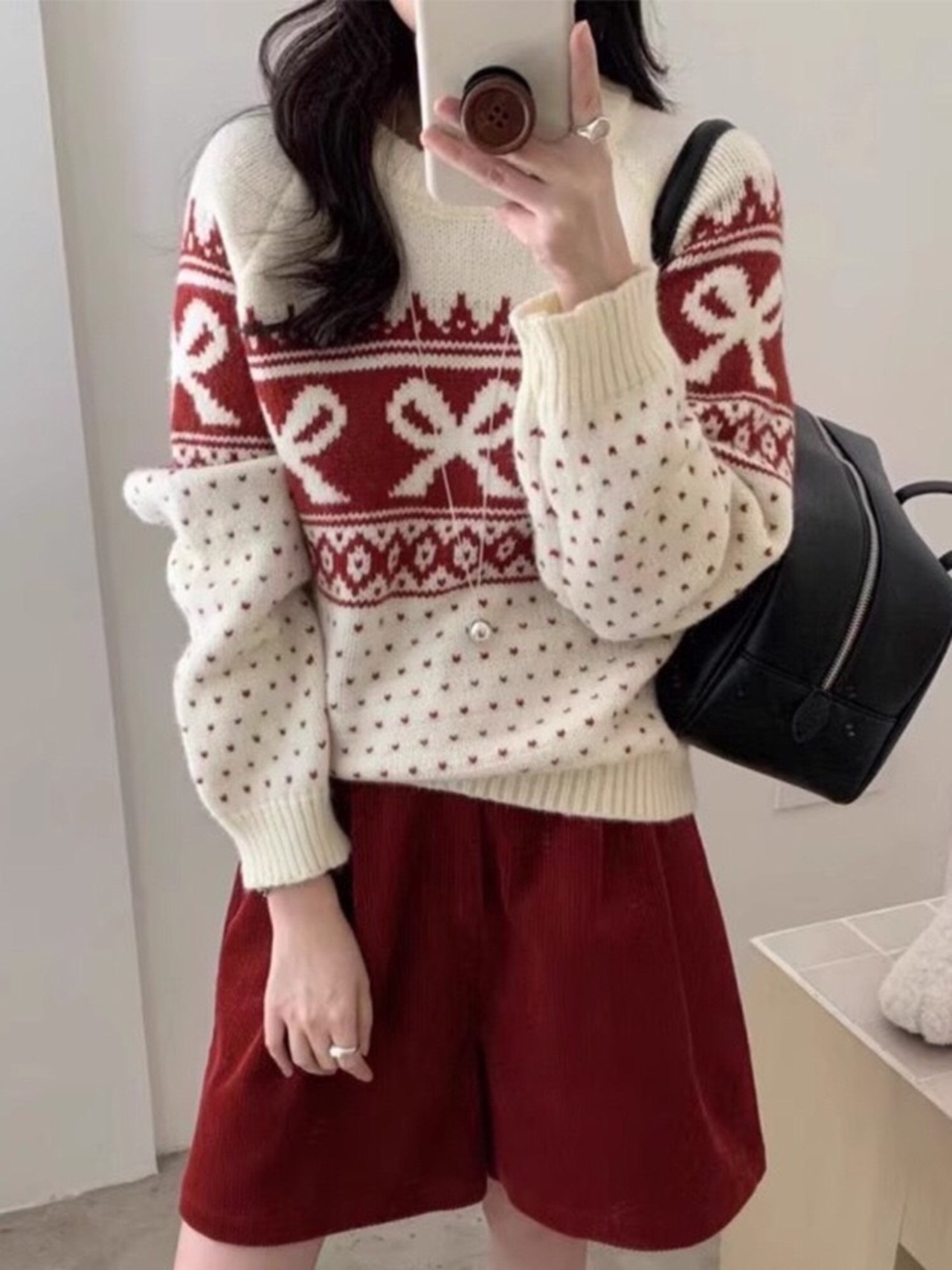 リボン柄レトロニットはリボン柄が施されたレトロなデザインのニットです。柔らかな風合いで、着心地も抜群!様々なスタイルに合わせやすく、カジュアルからアクティブなシーンまで幅広くご利用いただけます。デートやお出かけにもぴったりな一着です。