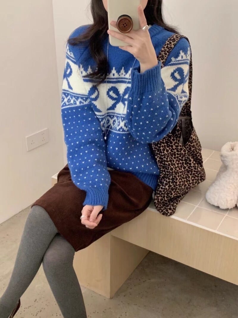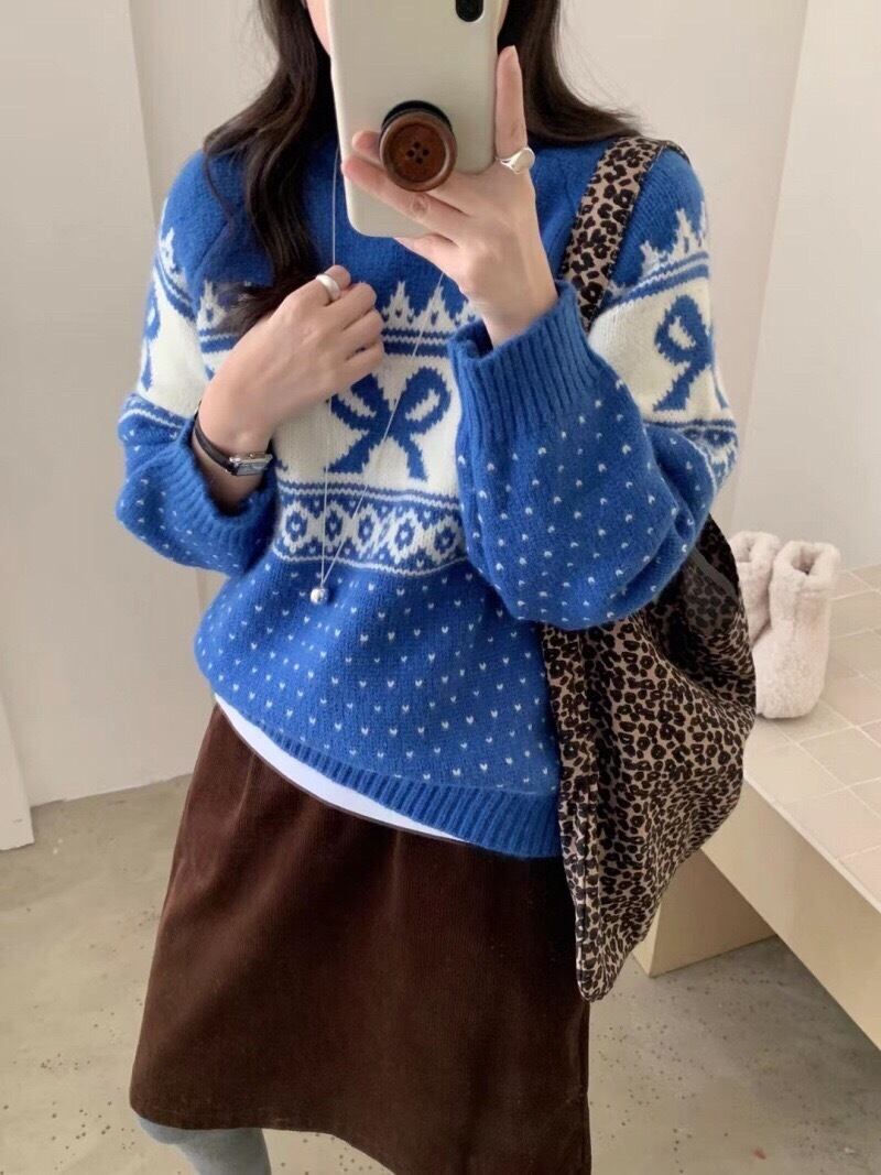 リボン柄レトロニットはリボン柄が施されたレトロなデザインのニットです。柔らかな風合いで、着心地も抜群!様々なスタイルに合わせやすく、カジュアルからアクティブなシーンまで幅広くご利用いただけます。デートやお出かけにもぴったりな一着です。