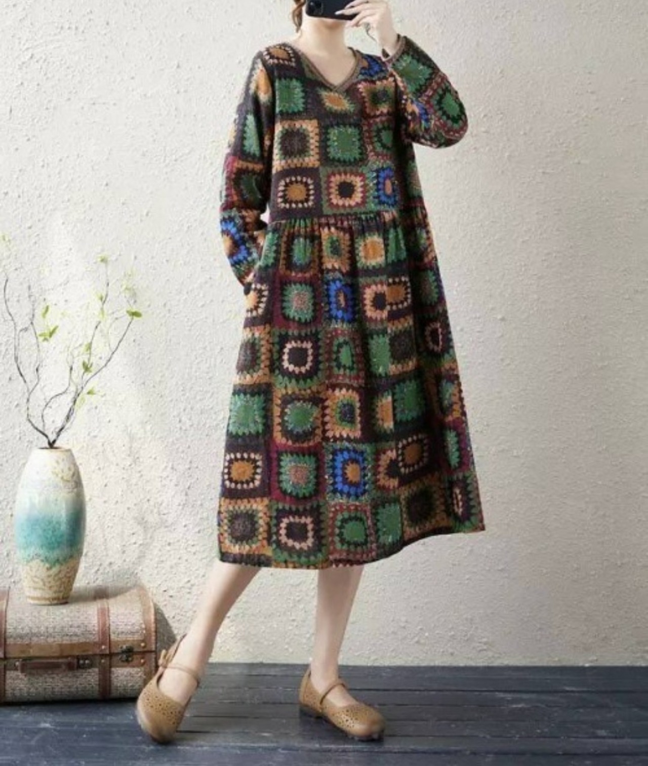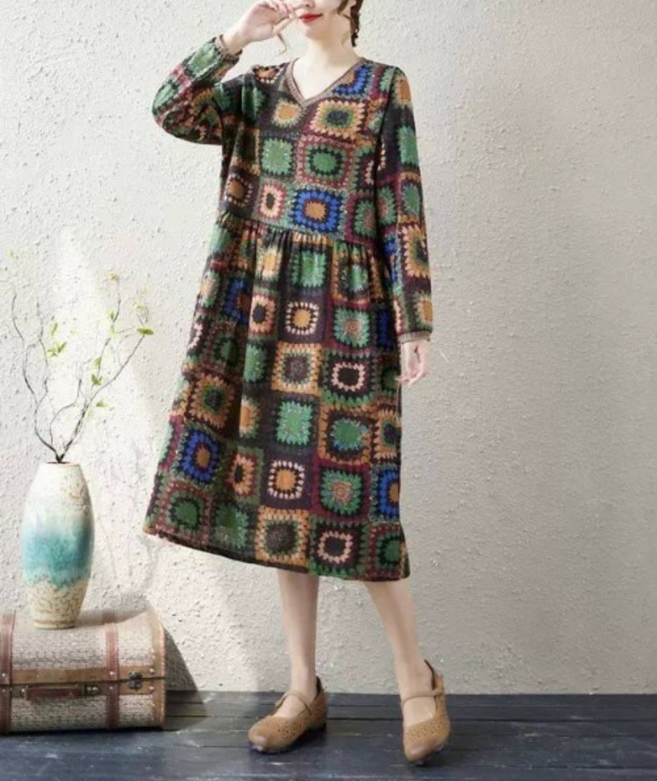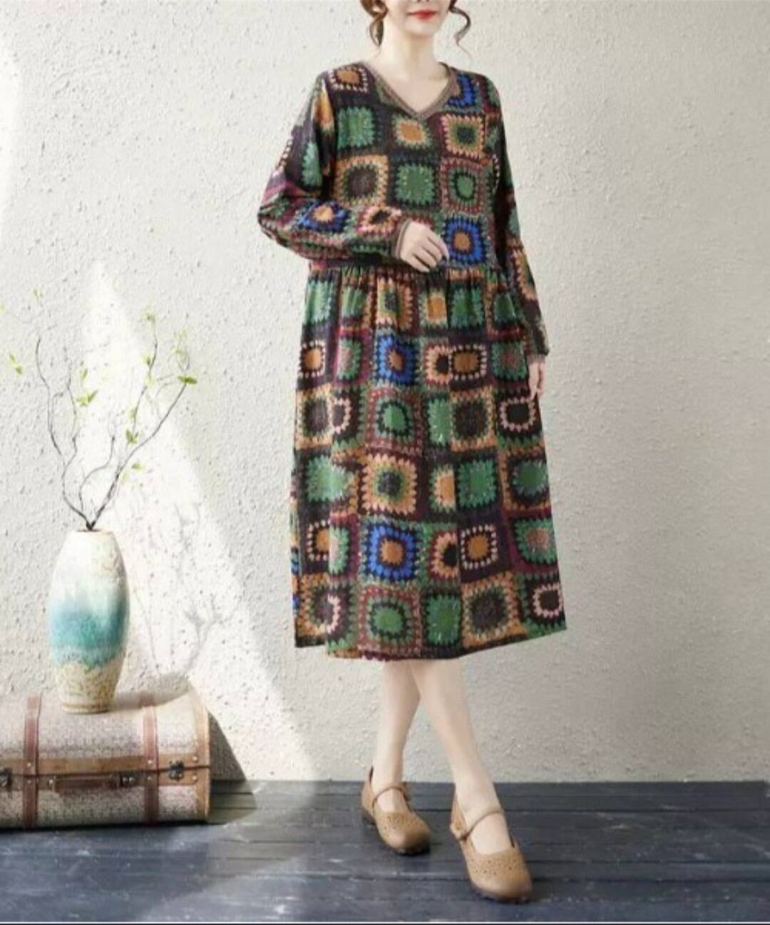 花スクエア柄ワンピース