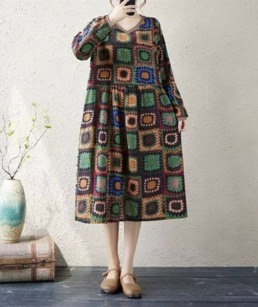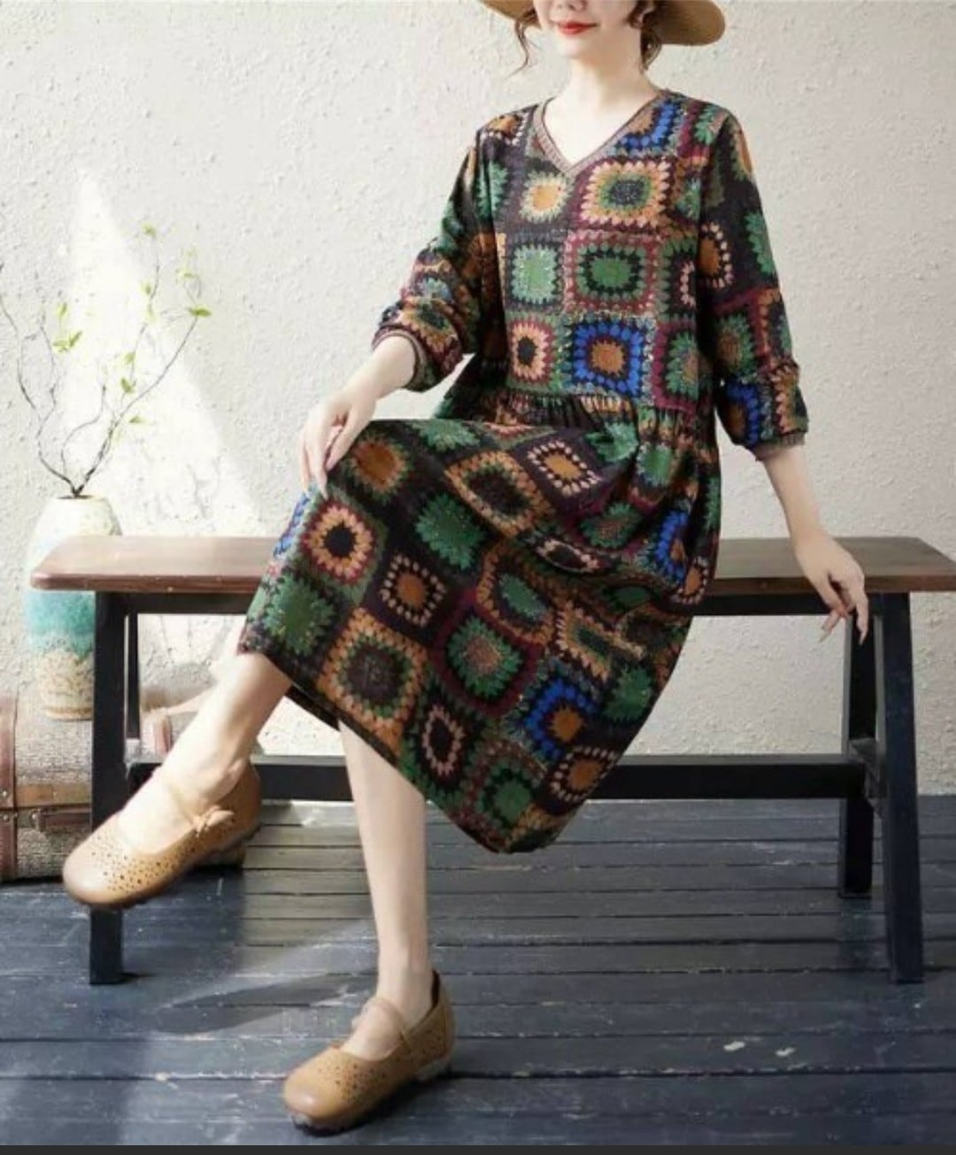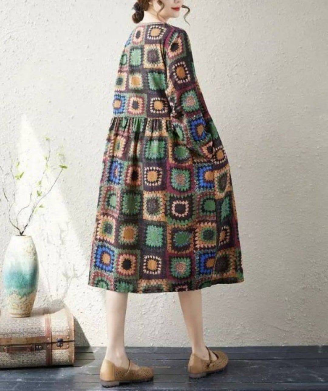 花スクエア柄ワンピース