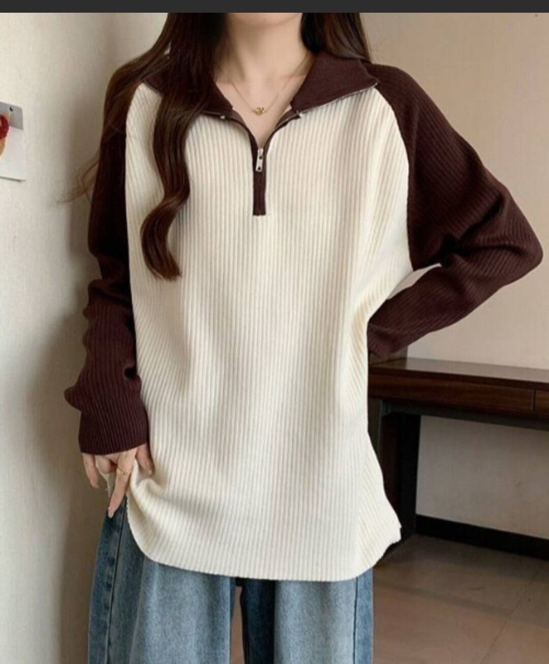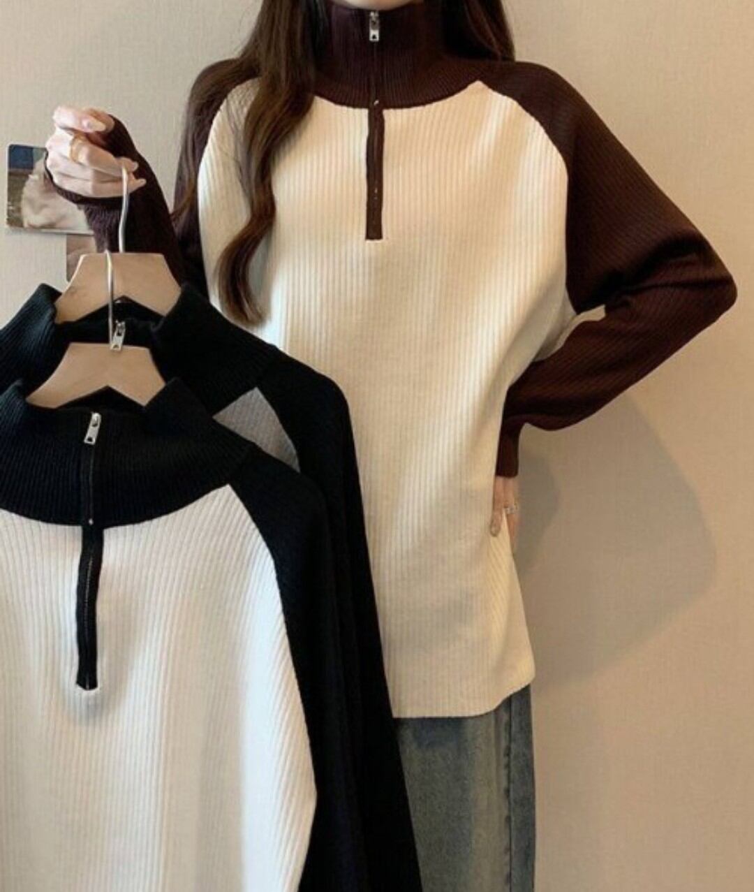 ハーフジップニットトップスは、トレンド感満載のスタイリッシュな一枚です!ハーフジップデザインが魅力的で、カジュアルなスタイルはもちろん、きれいめコーディネートにもぴったりです。柔らかな素材感が肌に優しく、快適な着心地を提供します。