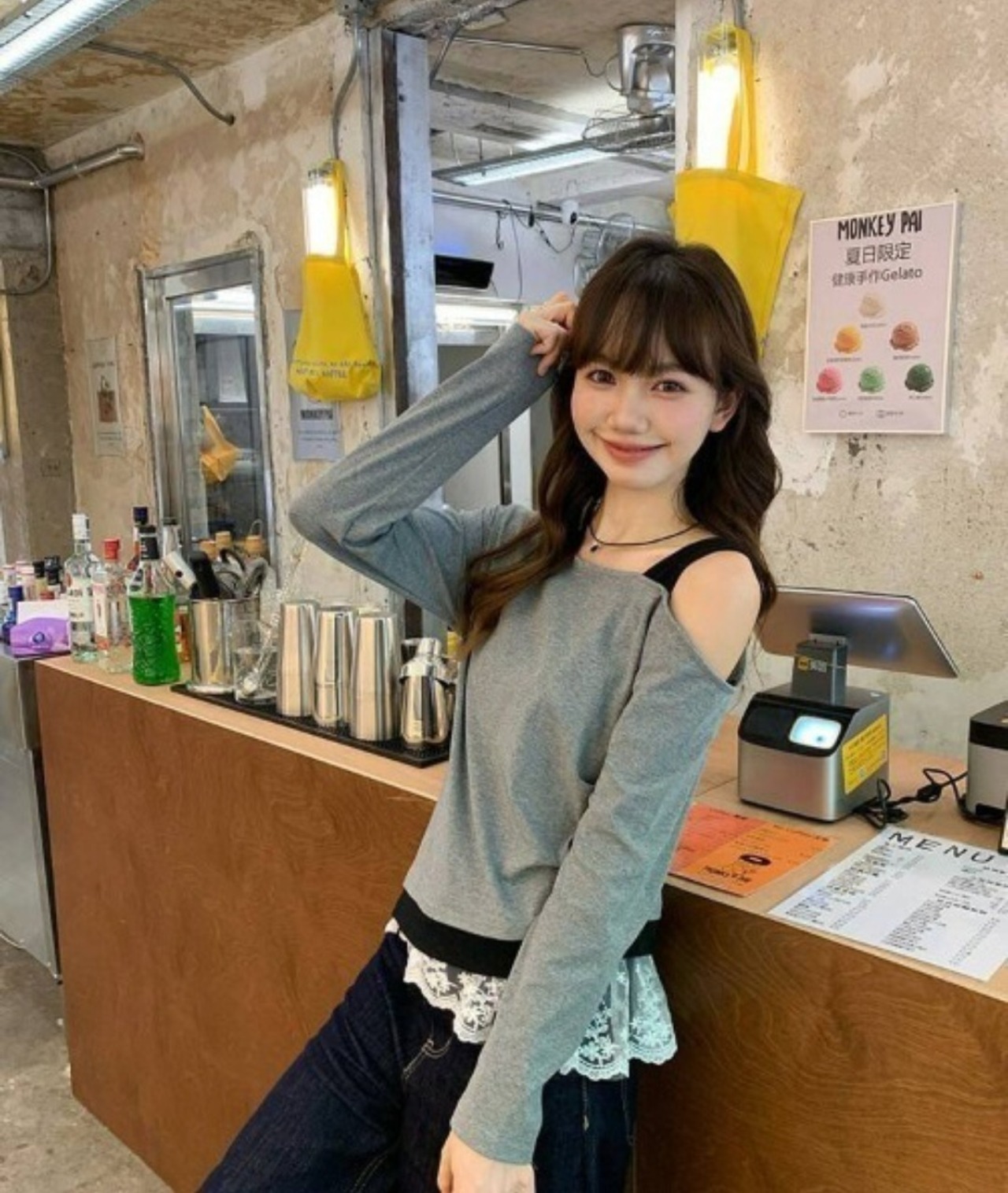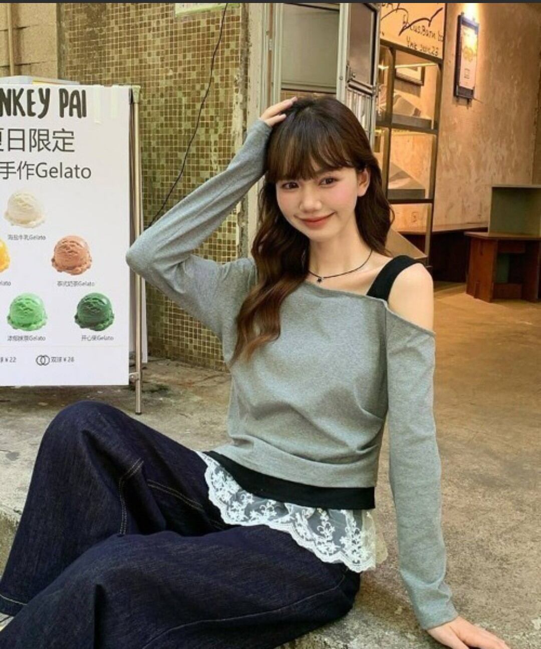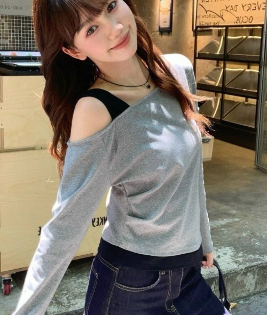 アンサンブル風ワンショルロン グレー
