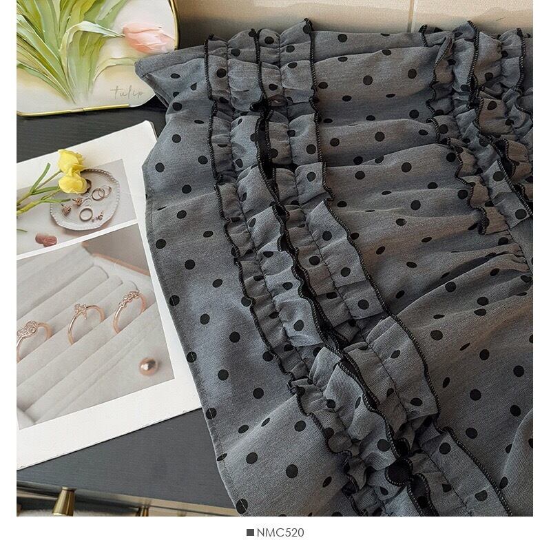 繊細なレース切り替えと、細かなポルカドット柄を組み合わせた贅沢なデザインスカートが登場しました。