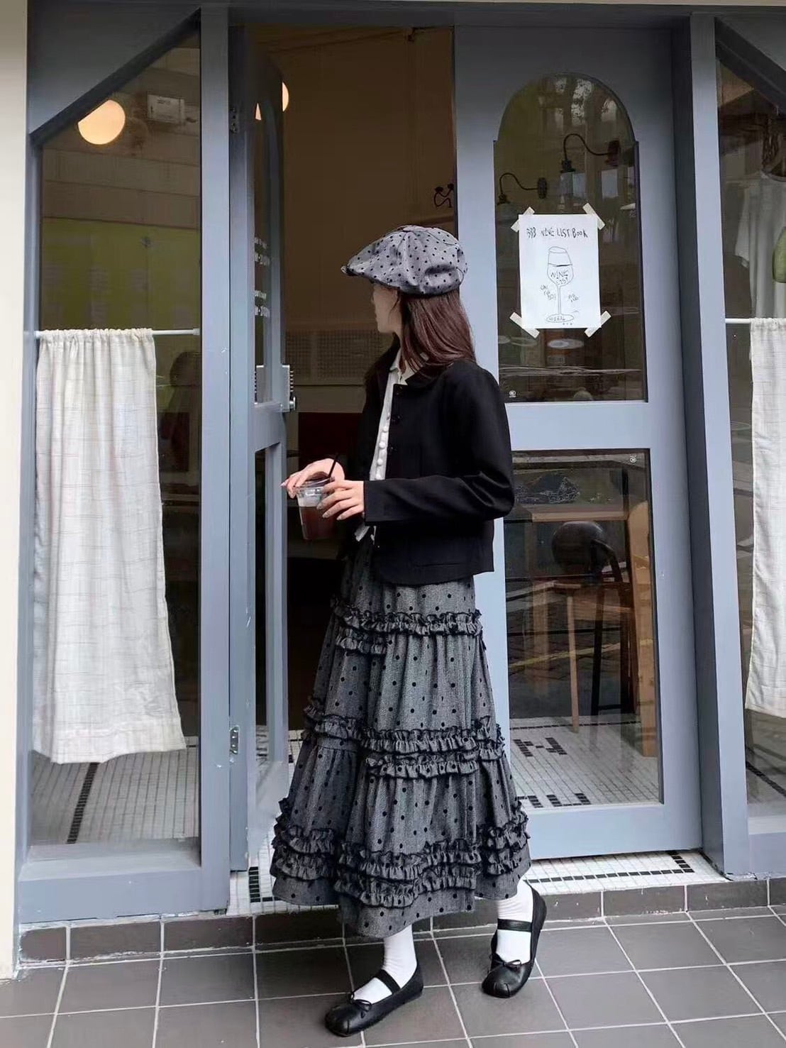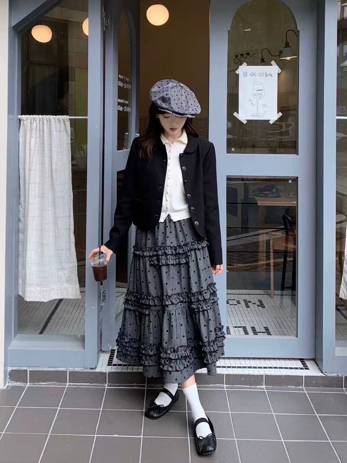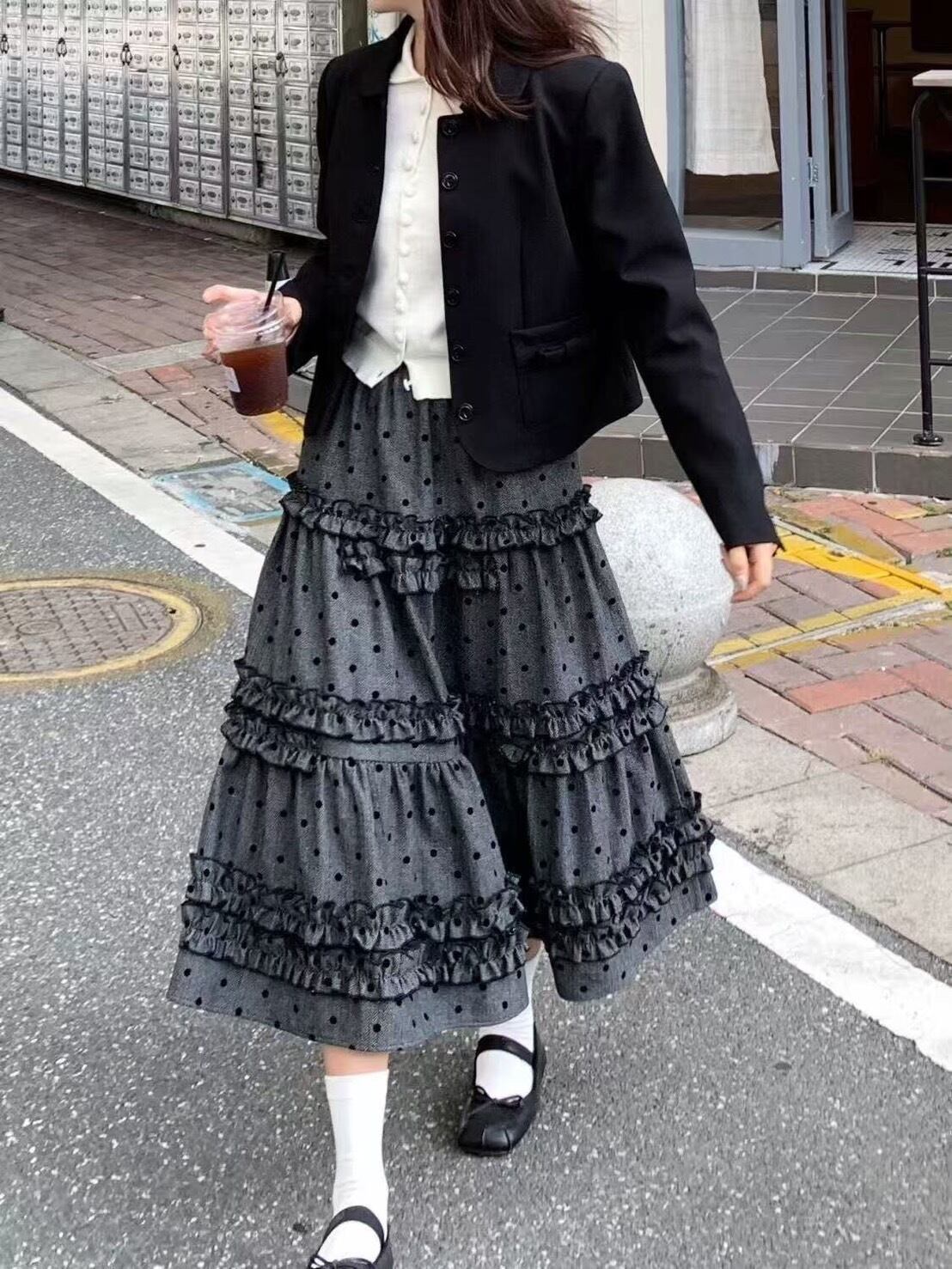ヴィンテージライクドット柄ティアードスカート