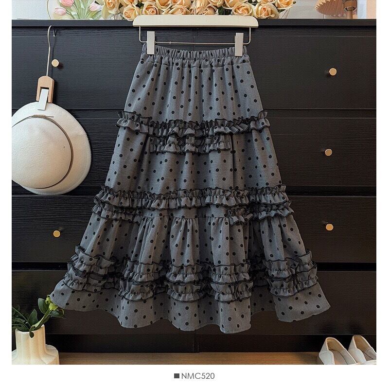 ヴィンテージライク ドット柄ティアードスカートは