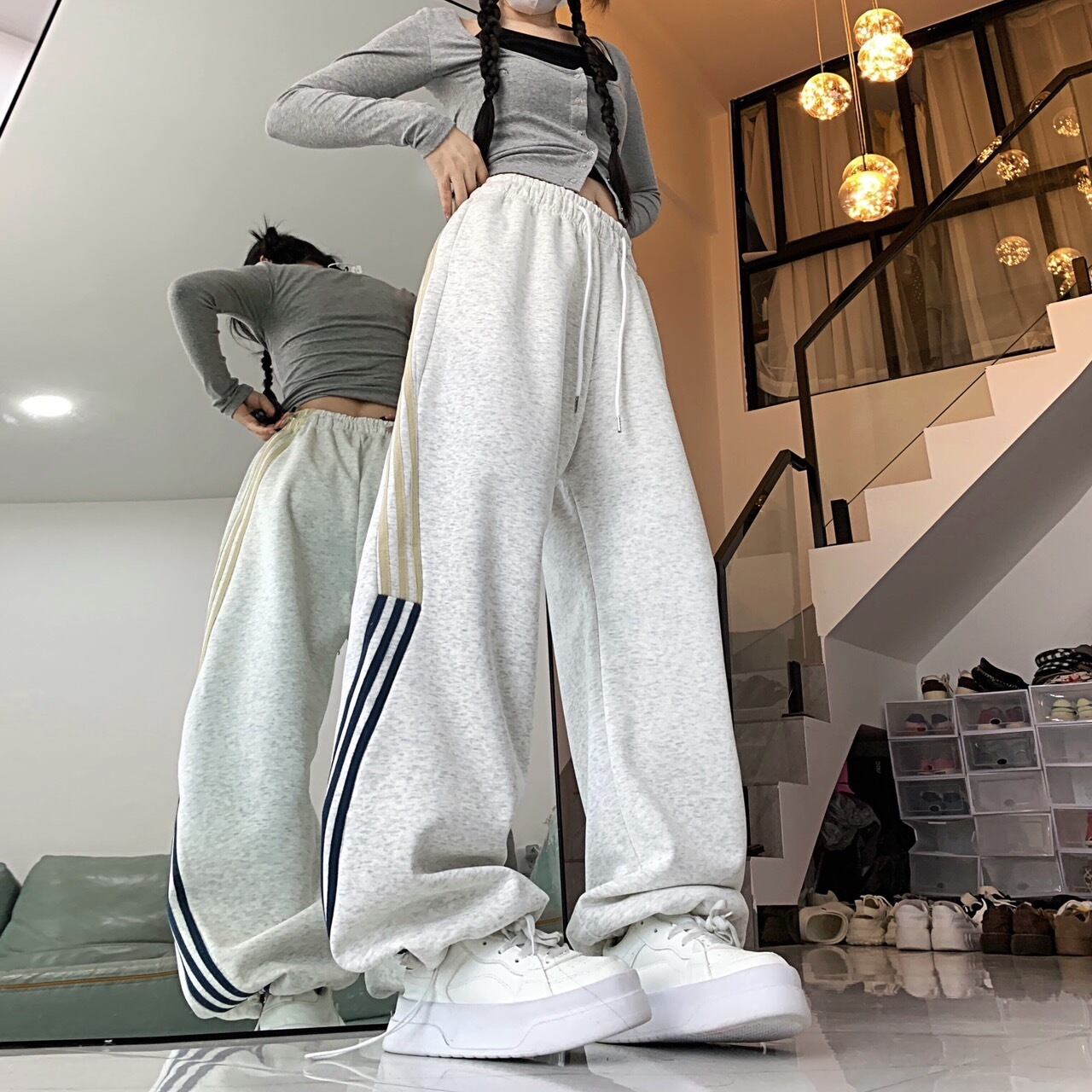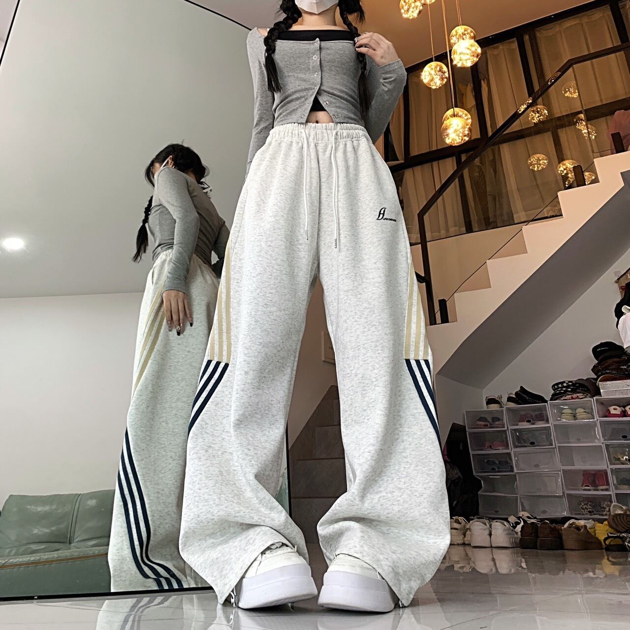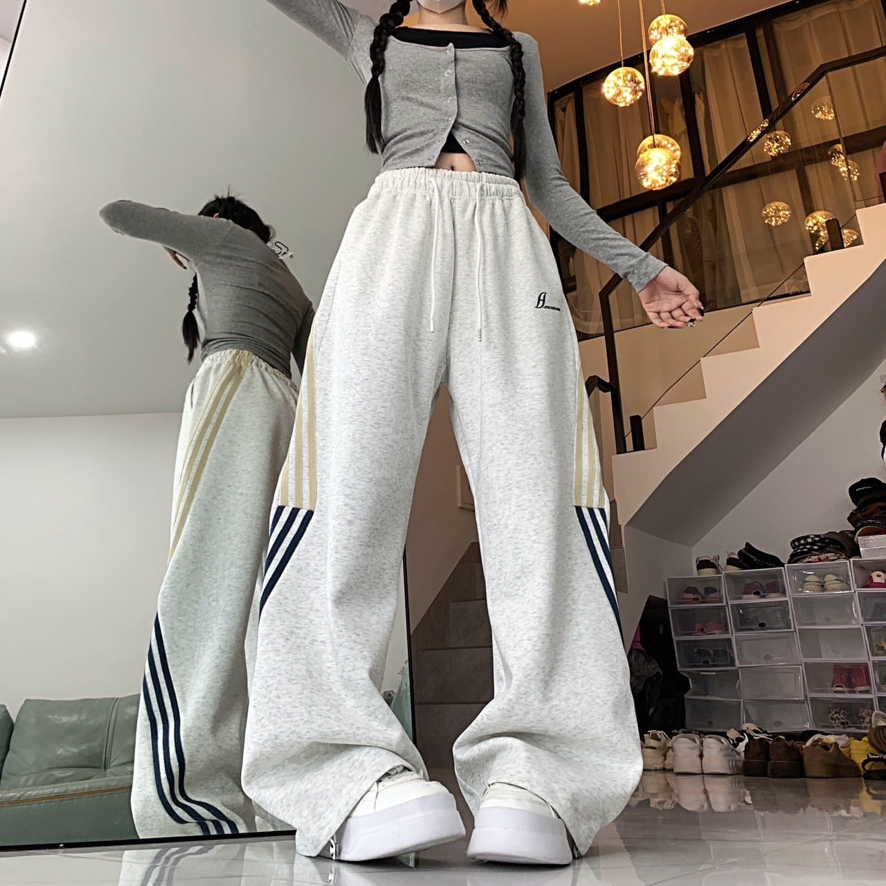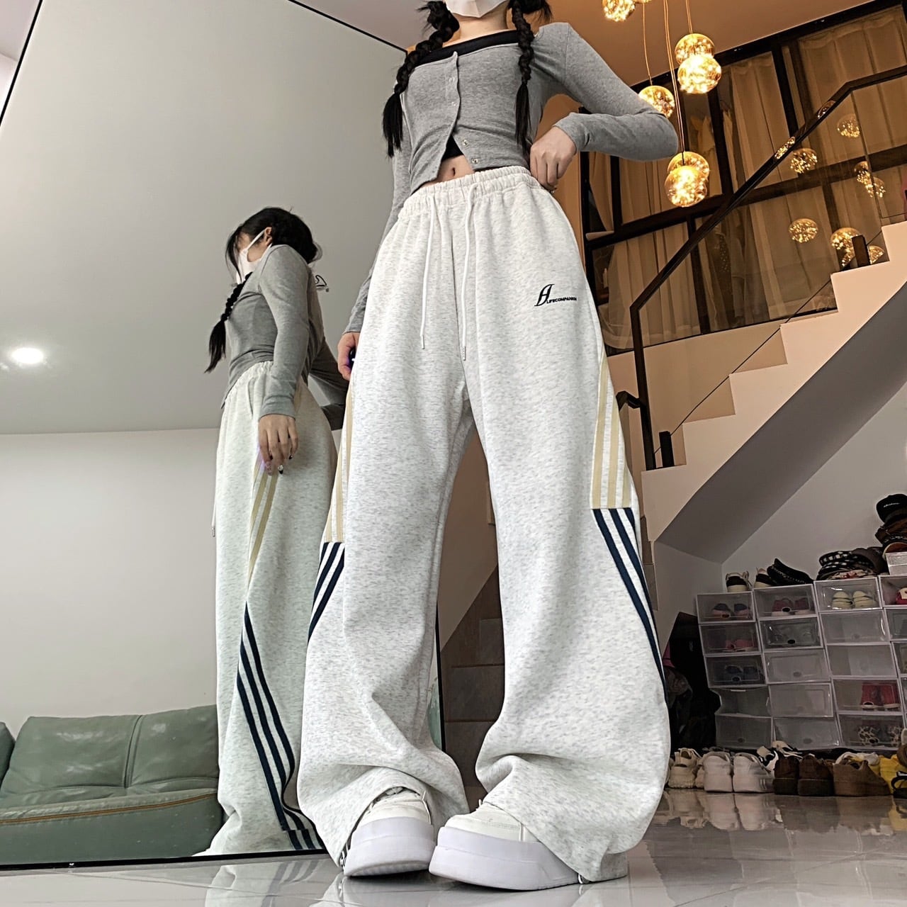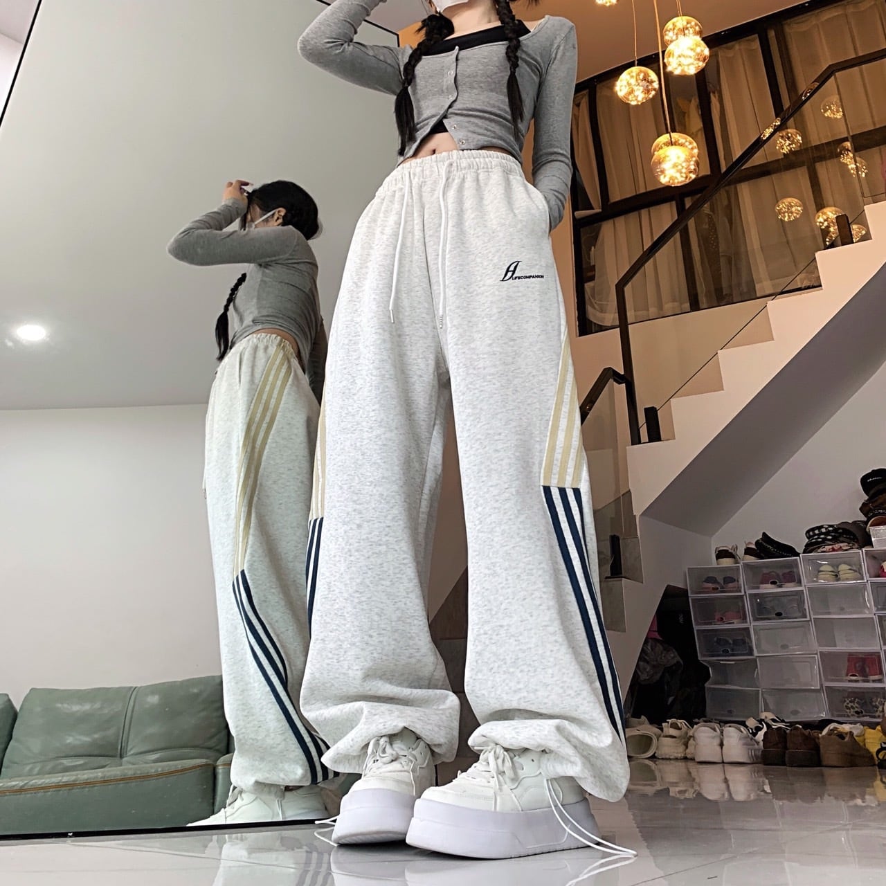 サイドラインスウェットパンツ グレー