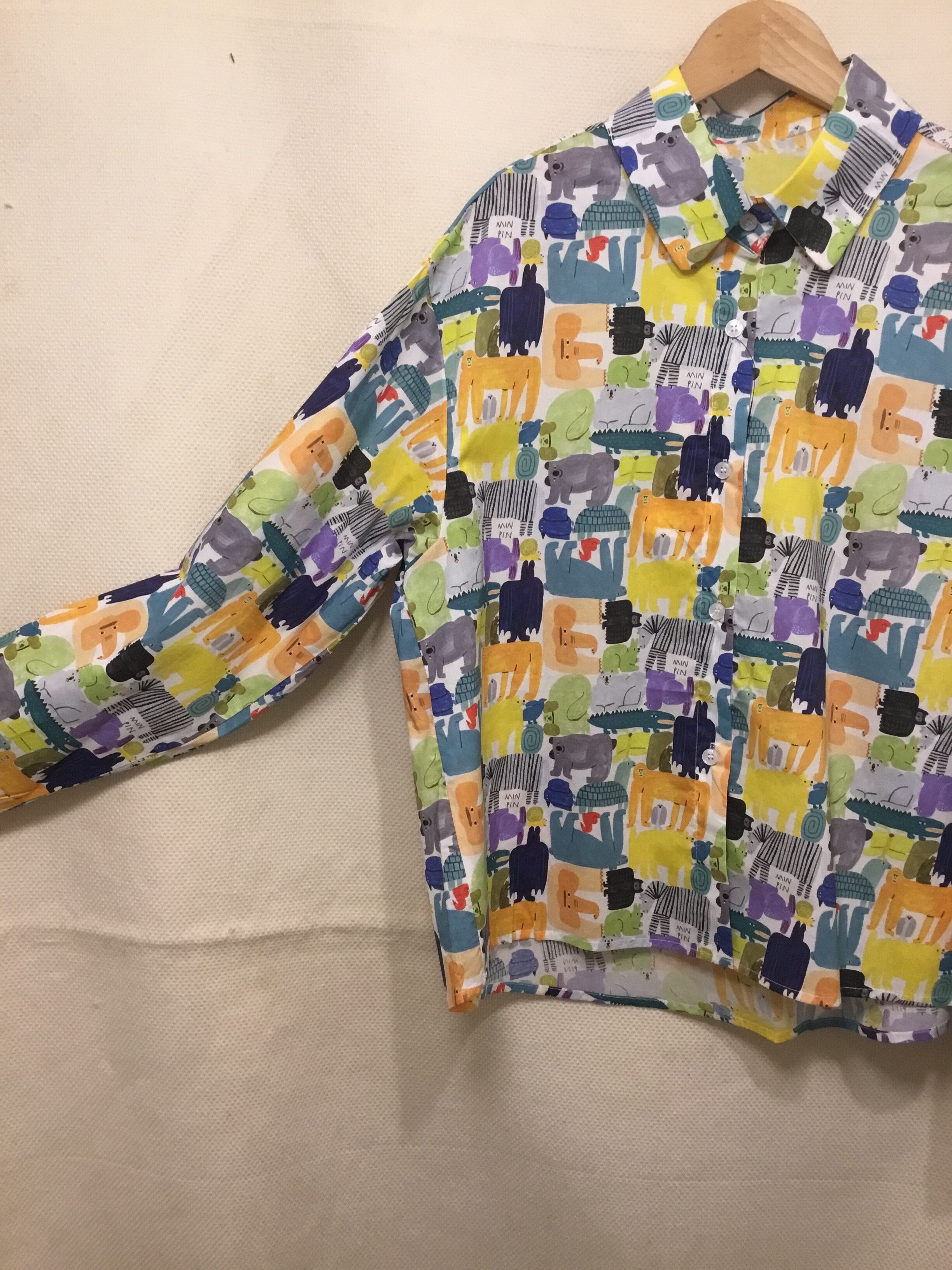 アニマル柄ブラウス!とてもユニークなアニマルのデザインが印象的なこのブラウスは、個性的でありながらも、どんなスタイルにもマッチするアイテムです。一枚あるだけで様々なコーディネートを楽しめます!